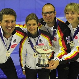 Großartige Leistung der deutschen Vertretung bei den European Mixed Curling Championships in Edinburgh (Schottland). Im Endspiel besiegten Andy Kapp (Skip), Petra Tschetsch (Third), Holger Höhne (Second) uand Pia-Lisa Schöll (Lead) den EM-Gastgeber und Titelverteidiger Schottland in einem ganz engen, dramatischen Match mit 5:4. Andy Kapp war überglücklich: "Es ist einfach nur großartig, eine tolle Teamleistung! Schottland war zweifellos eines der besten Teams hier. Dass wir sie nicht nur im Gruppenspiel, sondern auch im Finale besiegt haben, unterstreicht die starke Leistung unserer Mannschaft!"zurück
